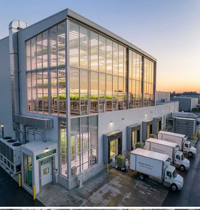 - Vertical Integration: 10x more yield per square meter than traditional land.